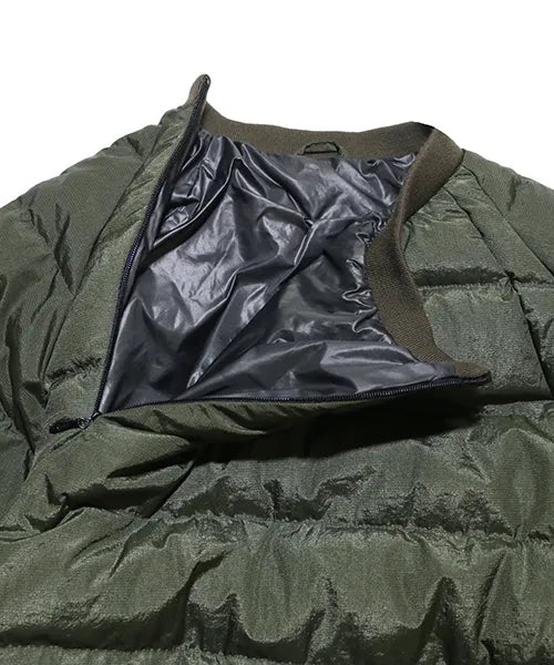 The neck area features a side zip, and both sides under the arms also have zips for easy wearing and removal. The shoulder design is raglan-style, providing a wide range of motion for easy movement. The outer material, made of highly water-repellent silk nylon, adds a glossy finish, enhancing its luxurious feel. Additionally, temperature regulation is possible by opening the zips.